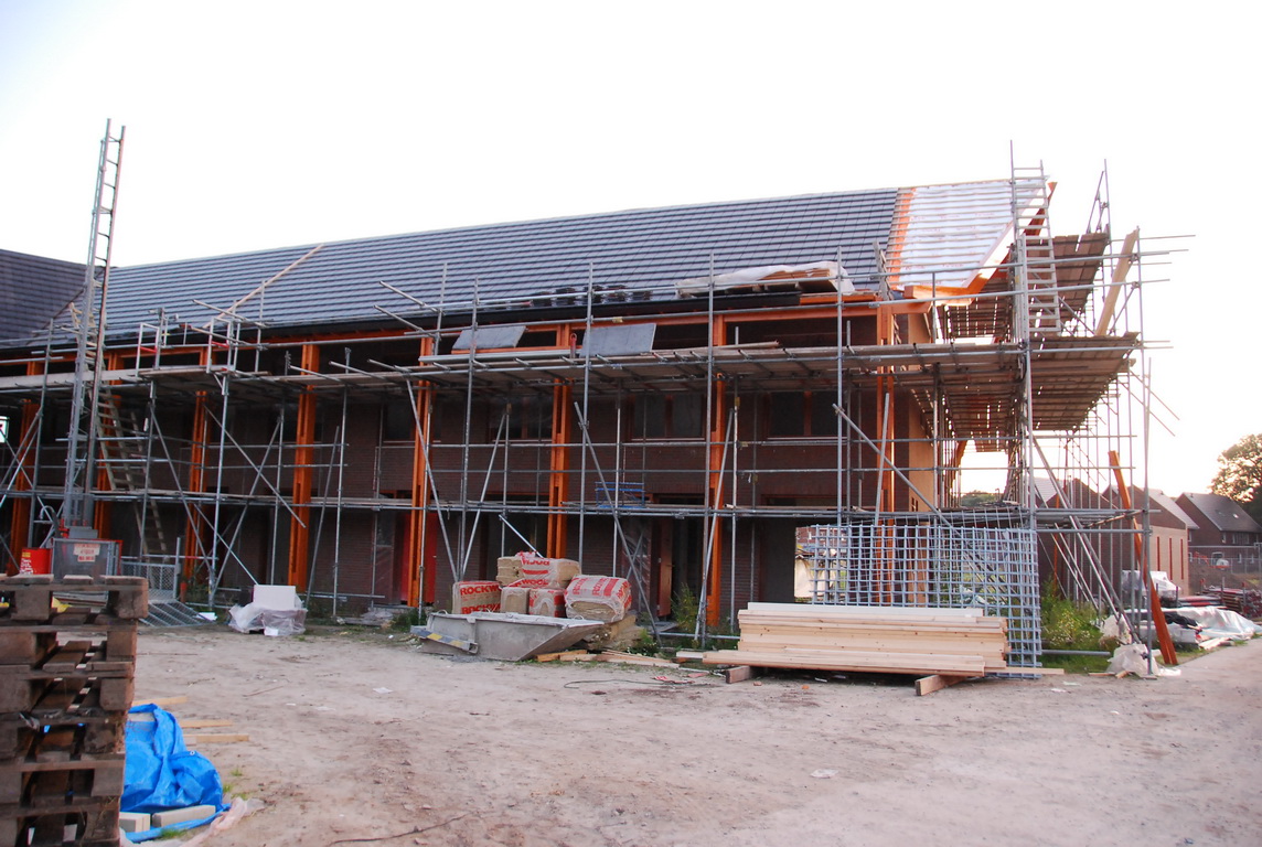 Eindelijk de steigers weg! Eindelijk zijn de steigers weg, zo krijg je teminste een goed beeld van de huizen! Gelukkig is het dak nu eindelijk dicht, en blijft het voortaan droog binnen.